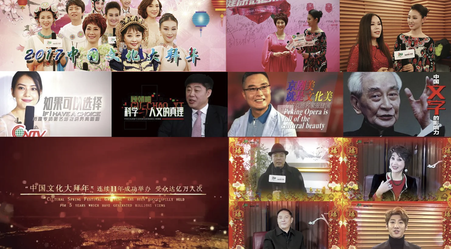 2017年,文化自信深入人心,文化市场日益繁荣,文化需求持续增长,文化惠民公益助力。在这一年,中国文化视窗携手公益机构,共同推出了第三届中国文化大拜年活动。廖昌永、郭蓉、曲比阿乌、张英席、邱思婷、陈爱莲、董圆圆、张建国、高圆圆、张铁林、卢奇等近百位海内外各界精英和艺术家齐聚一堂,共襄新春盛典。他们忆恩师、抒情怀,用精湛的技艺和真挚的情感,为春节文化注入了新的内涵,通过文化的力量,传递着对祖国的热爱和对民族的深情,让每一位华人都能感受到家的温暖和文化的魅力。