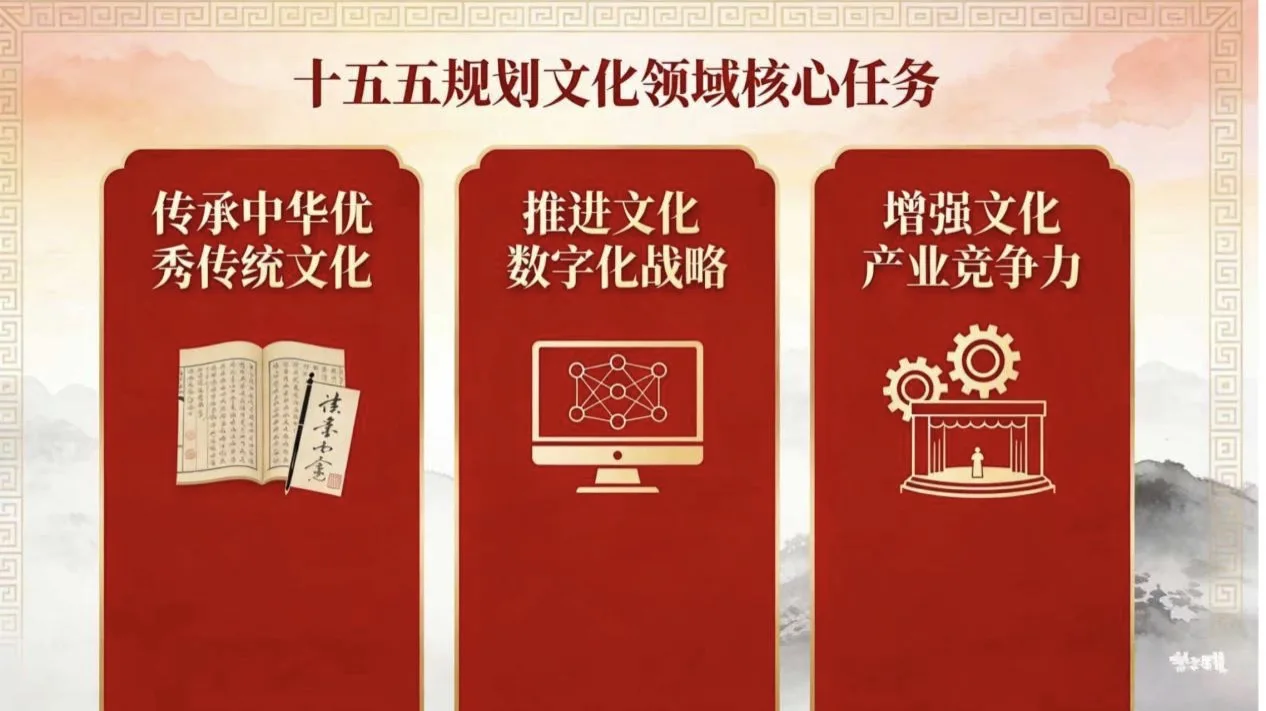 3月5日,《中华人民共和国国民经济和社会发展第十五个五年规划纲要(草案)》摘要发布,其中指出大力繁荣文化事业。健全公共文化服务体系,加强优秀传统文化保护传承利用,让人民享受更高品质的文化生活。繁荣文化创作生产。提升公共文化服务水平。加强文化遗产保护传承。