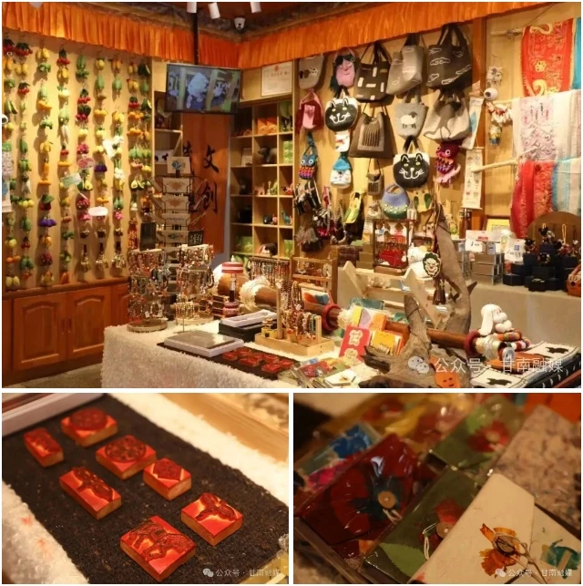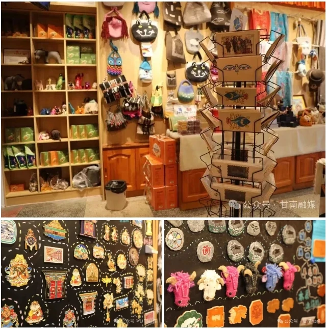 进入店内,木质展架上错落摆放着各类文创产品:印着拉卜楞寺建筑纹样的笔记本、憨态可掬的甘加羊玩偶、融入“擦擦”元素的冰箱贴、散发着清雅香气的本地藏香……游客们一边挑选商品,一边与店主交流,小小的店铺里满是热闹的互动场景。