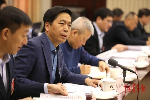 3月6日上午,北京会议中心,政协科技界别小组讨论会,全国政协委员、电子信息技术专家吕跃广发言。中青报·中青网记者陈剑/摄