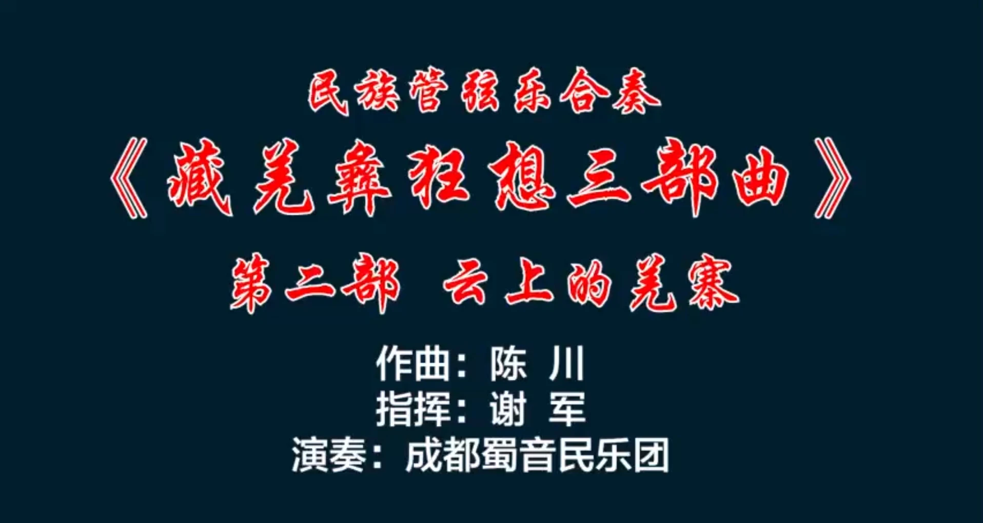 作品信息:大型民族管弦乐套曲《藏羌彝狂想三部曲》第二部”云上的羌寨”作曲:陈川,指挥:谢军,演奏:成都蜀音乐团