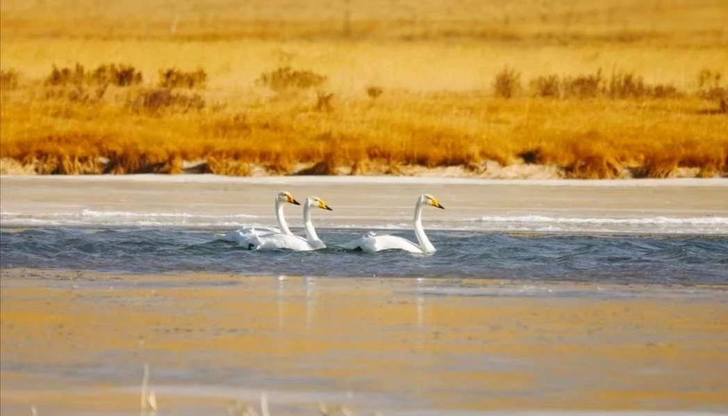 初冬时节,寒意渐浓,尕海国际重要湿地内的郭茂湿地,迎来了一批远道而来的“贵客”——首批13只越冬大天鹅已翩然抵达,在此安然栖居。